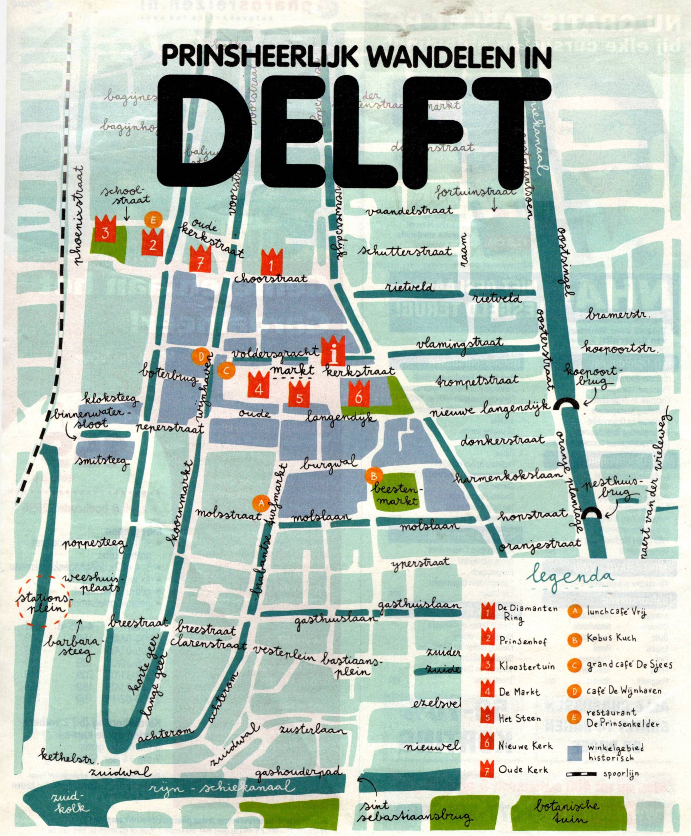 Vanuit station Delft wan delt u eerst de stad in.